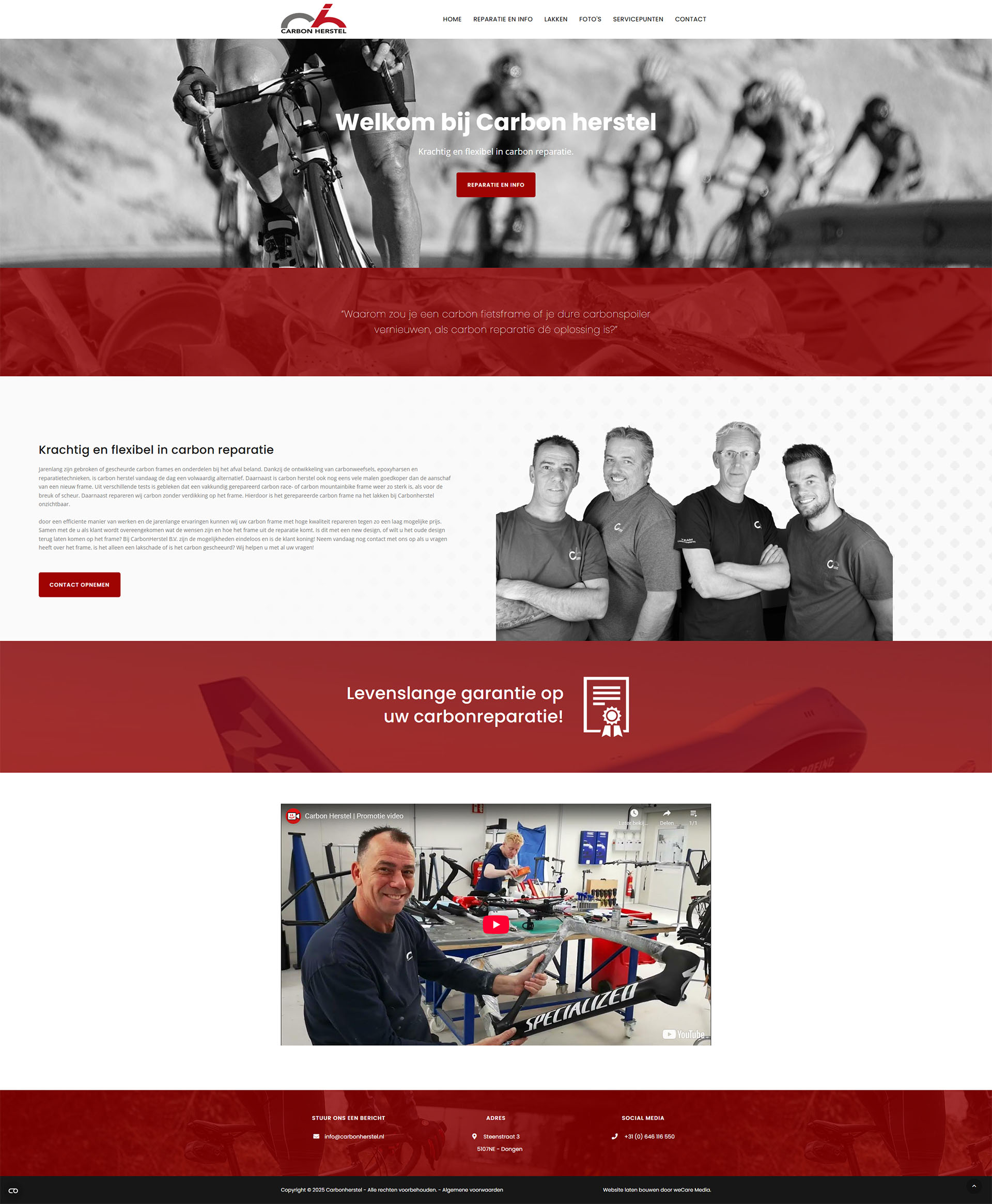 Het resultaat is een professionele en overzichtelijke website die het specialistische werk van De Carbonspecialist duidelijk laat zien. Bezoekers krijgen inzicht in het reparatieproces, kunnen eenvoudig contact opnemen en vinden snel het dichtstbijzijnde servicepunt. Dankzij de Duitse versie is de website ook geschikt voor internationale klanten.